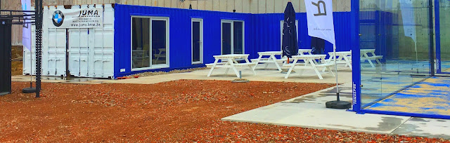 For a shipping containers padel sport club (its a mix between tennis and squash) the Living Project Homes used 4 x 40ft HC containers, inside the containers they built a woodframe with insulation. The client wanted an eco look, the walls from the OSB3 board and the roof from OSB3 with a PVC folie wrap around for the color.
