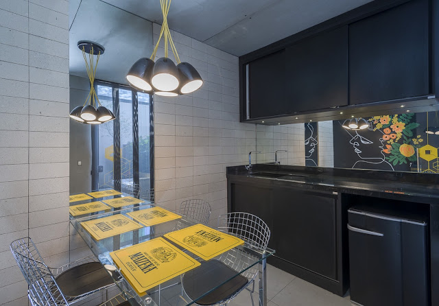 In the interior design, everything is very simple and at the same time of great refinement. Warmth, thermal comfort, visual and integration are priorities that receive special treatment through the decoration. Luminaires with their own design, functional parts, recycled materials, colors in harmony and art, a lot of art printed in all environments. No paintings, paintings are eternalized on the walls and doors, each work integrates the scenario that leaves no doubts: Container is a creative office and from it come different projects, out of the common place, where being is more important than having.
